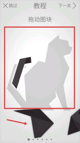 从教程界面能够看到,得把下方的黑色图块拖拽到上方对应的位置,来填充灰色的轮廓,这对玩家的空间想象力和动手能力是一种考验。