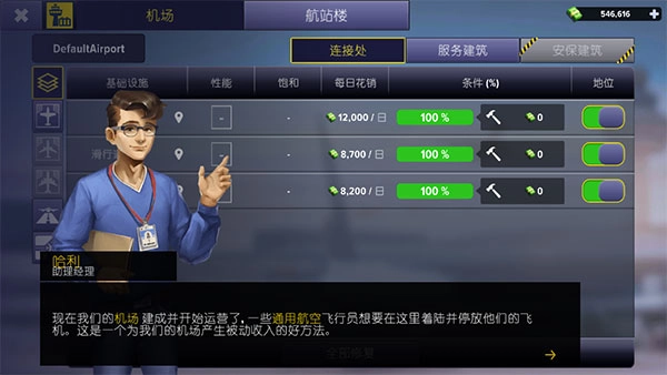 2、你的职责是用心经营机场,增设更多设施,吸引更多人选择乘坐飞机出行。