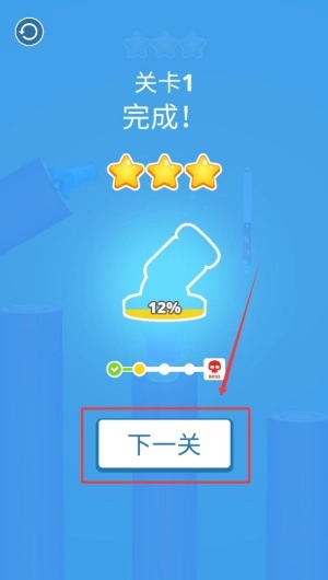 通关之后,点击界面右下角的“下一关”按钮选项,就能解锁并跳转到全新设计的后续关卡,继续挑战冒险。