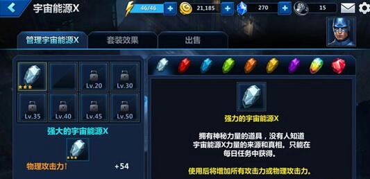 消耗多余的宇宙能源X,能够提升你所需的宇宙能源X的属性,最高可将其品质提升5级,即便是已经装备在身上的也能进行这项提升操作。