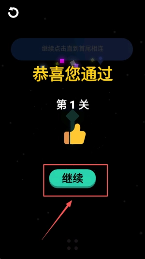 每闯过一关,屏幕上都会弹出“恭喜您通过第X关”的提示,点击“继续”按钮就能挑战下一关。