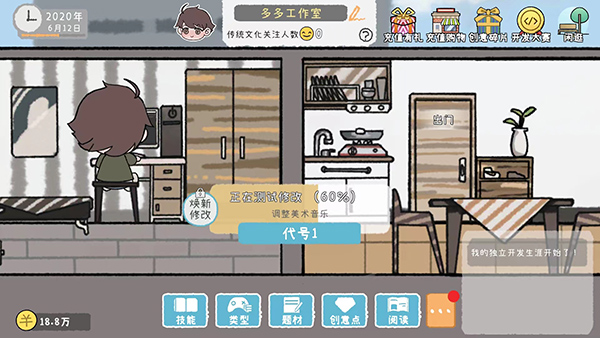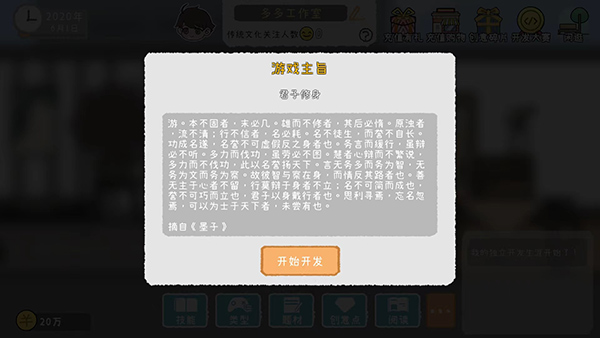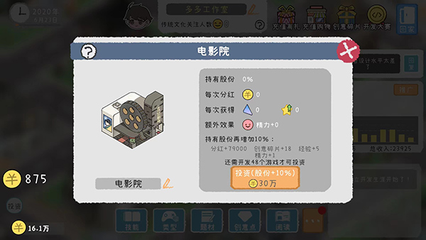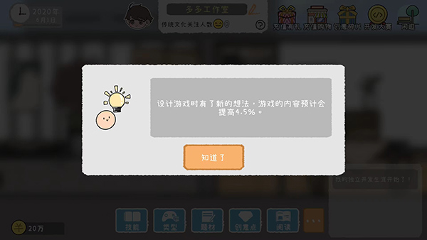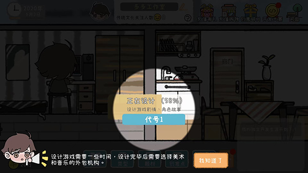 3、制作开发:有很多小游戏需要玩家完成,完成这些小游戏后,可以提高创作出来的游戏的美术和音乐,还能增加文化影响。