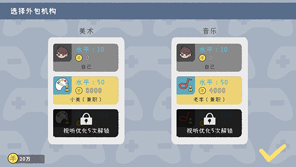 9、设计游戏需要一些时间,设计完毕后需要选择美术和音乐的外包机构,玩家可以根据需求选择相应的方案,