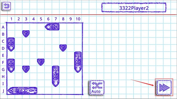 接着便进入一号玩家的布阵环节,在此处,点击Auto按钮能够一键完成随机布阵,布阵结束后,点击右下角的【下一步】图标即可。