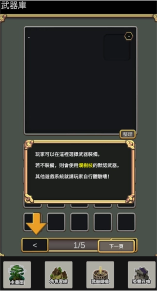 5、进入武器库后可选择装备武器,若未装备武器,系统将默认使用烂树枝武器。