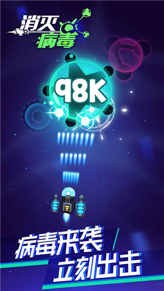 游戏界面下方最左侧的图标对应的是你的主武器,它具备火力与射速两种属性效果,这两项属性建议优先升级——火力越强劲、射速越迅猛,你的生存能力就会越强,清除病毒时也会更高效。