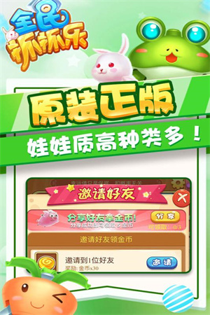 进入游戏后,玩家把游戏分享给好友或朋友圈,被邀请的玩家进入游戏体验抓娃娃,邀请者和被邀请者都能得到金币奖励。