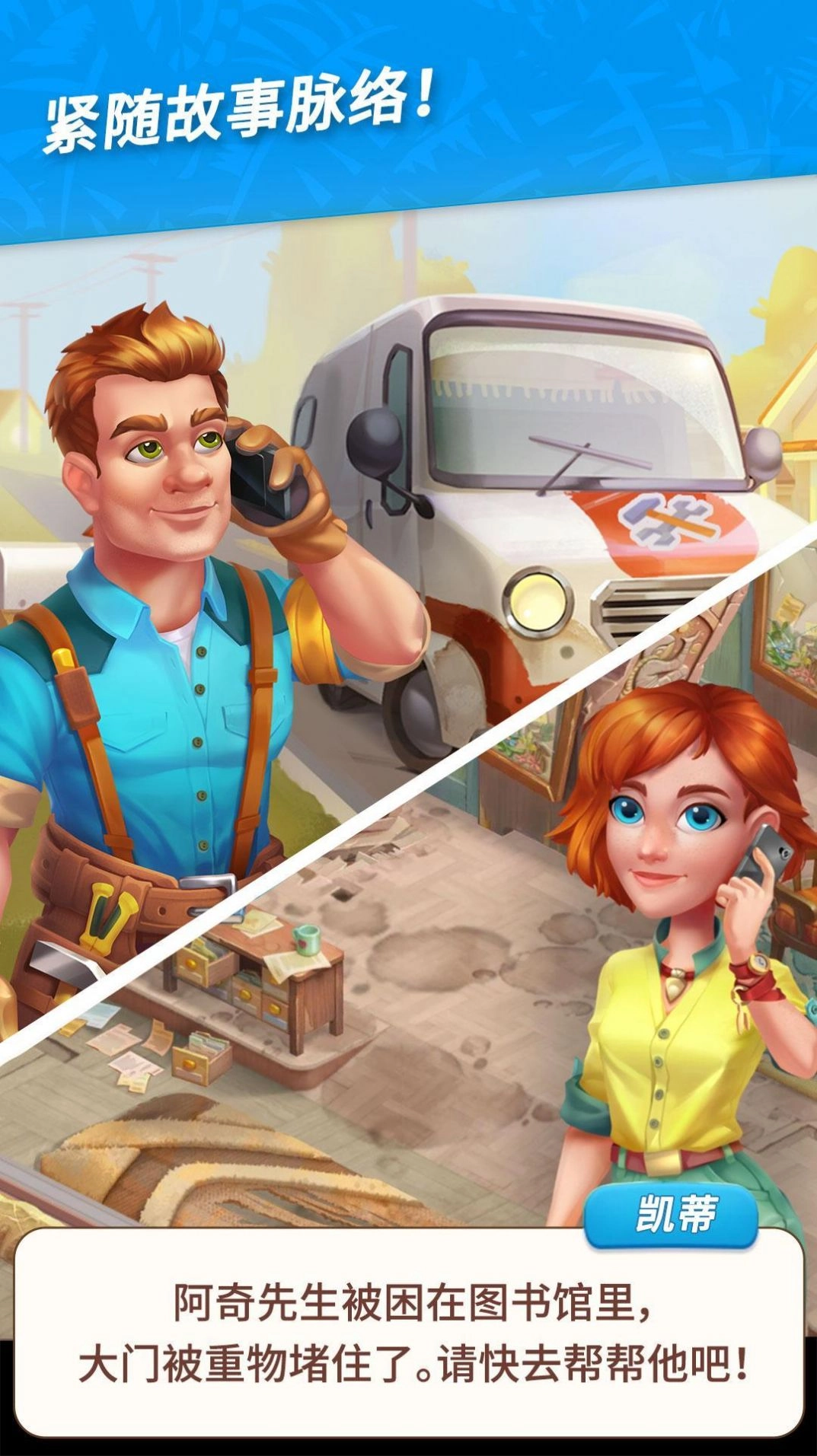 1、通过收集金币与奖励推进建设进程,对家中的老旧建筑进行建造与翻修,还能尽情体验装饰不同风格房间的乐趣,打造出专属于你的独特豪宅。
