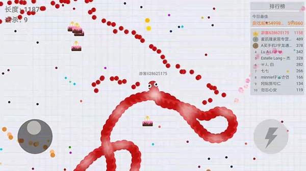 游戏的唯一目标就是成为最长的那条蛇!吃掉地图上的闪亮光点,就能快速让自己变长变粗。要是撞到其他蛇的身体或者墙壁,你就会死亡,而蛇死亡后会变成许多光点。吃掉这些别人死亡后留下的光点,就能迅速增加自己的长度。