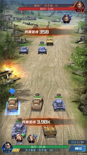 战力提升之后,接下来要做的就是去击败盘踞在附近的外星人。进入战斗状态后,战车会自动开启回合制对战,整个过程不需要玩家进行任何操作,只要把所有敌人都消灭掉就能取得胜利。