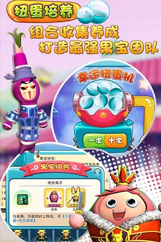 游戏创新融合了塔防玩法与收集元素,还设计了果宝组合机制——不同等级的果宝组合,其战斗力会有显著差异。