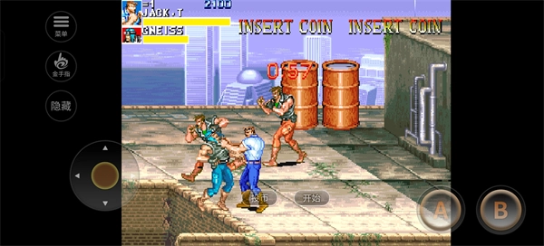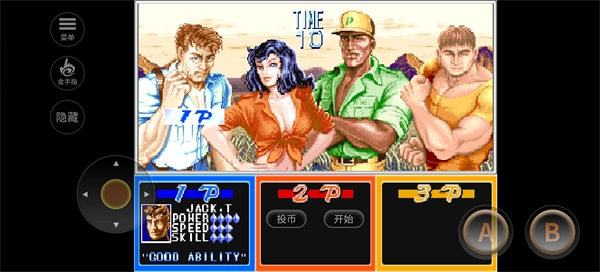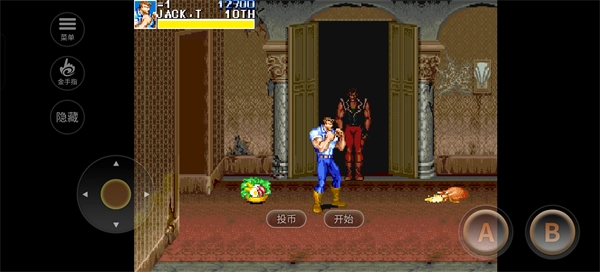 在游戏里,你可以通过上下左右键来操控方向,同时设有攻击键(即A键)与跳跃键(即B键)。