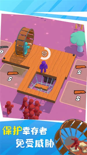 3、体验木筏上的丧尸求生冒险乐趣,积累经验,操控卡通角色,与强大敌人展开对抗。