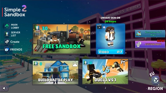 简单沙盒2国际服,其英文名称为Simple Sandbox 2,是一款自由度极高的休闲沙盒游戏。在这个国际服版本中,你能够和来自全球各地的玩家共同游玩,还能携手发挥想象力,打造出各式各样的独特世界。游戏内提供了多种玩法模式供你体验,不妨自由探索一番,尽情享受最有趣的沙盒冒险吧。