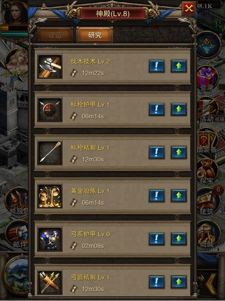 提升科技等级,可以增加各种资源产量的百分比,科技越多、等级越高,增益效果也会越明显。只需点击打开军团,点击研究,就能在众多科技选择自己需要的科技