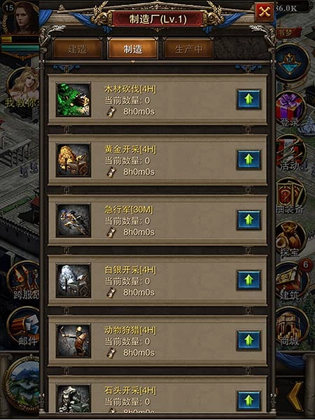 相关建筑:主城、 金矿长、采石场、伐木场、银矿场、农场