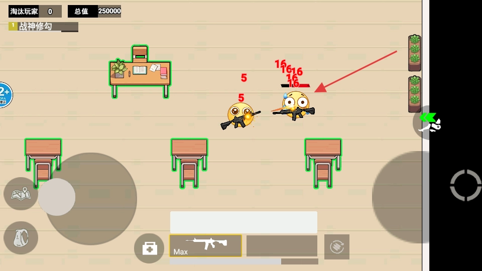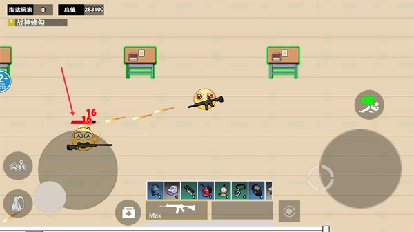 3、在教室场景遭遇敌人时持续射击,借助【课桌】作为掩护来降低自身所受伤害,迅速击败对手以便继续收集物资。