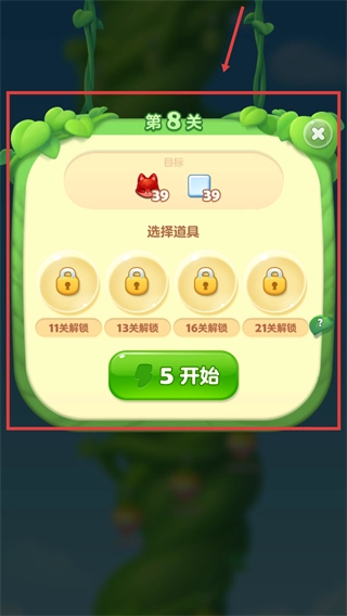 1、开启【第8关】前请确认本关目标为收集【39】只狐狸与【39】块冰块,消耗【5】个道具后点击开始按钮即可启动关卡挑战。
