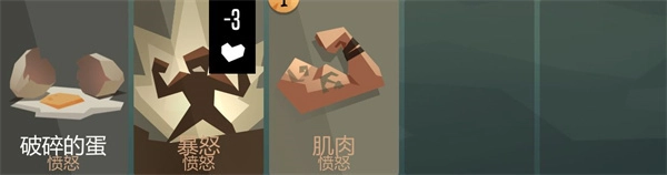 鸡的被动效果加上初始卡牌{破碎的蛋}就能触发愤怒状态,而和愤怒有关的卡牌还包括{暴怒}与{肌肉}。