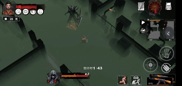 2、体力:当体力值降至零时,玩家角色会阵亡。体力仅在受到攻击时减少,一旦脱离战斗状态便会自动恢复。玩家制作的攻击类道具能够提升击杀僵尸的效率,这也会间接对体力的消耗速度产生影响。