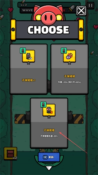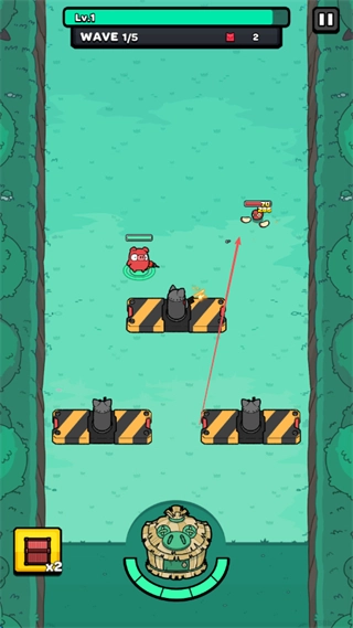 1、挑选子弹猪猪类型的炮台进行布置,点击前进按钮进入关卡战斗。