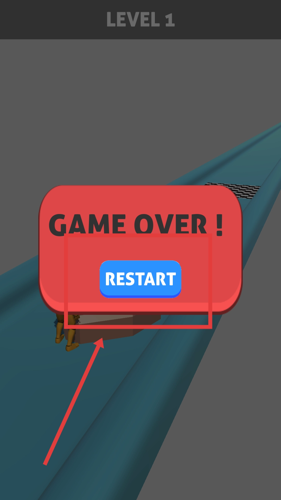 当小人撞到石块时,会弹出失败界面并显示重新开始按钮,点击此按钮即可重新开启本关的挑战。