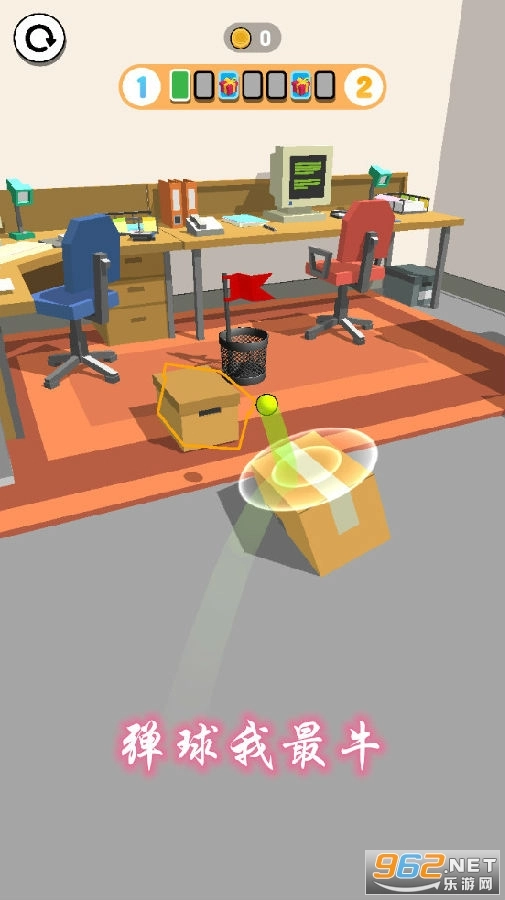 《弹球我最牛》是一款趣味十足的弹球游戏,那魔性的小球在玩家抛出后,会在房间里四处不断反弹,玩家需要精准计算反弹角度,让小球经过若干次反弹后顺利落入垃圾筐。游戏初期可能只需三四次反弹就能完成目标,但越往后关卡难度越高,反弹次数也会越来越多。玩起来超解压,能把所有烦恼都“弹”走,快来体验吧!