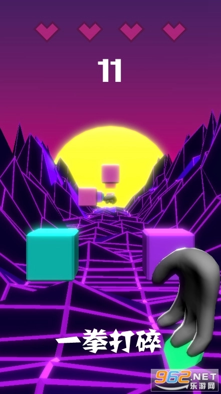 《一拳打碎最新版》是一款融合了敏捷、动作与跑酷元素的游戏。在这条布满嶙峋怪石的霓虹长路上,有一双可供操作的手掌——你需要通过点击与滑动,让手掌化拳,击碎沿途的彩色方块。每关仅有四次尝试机会,若四条生命耗尽时仍未闯关成功,便会挑战失败。