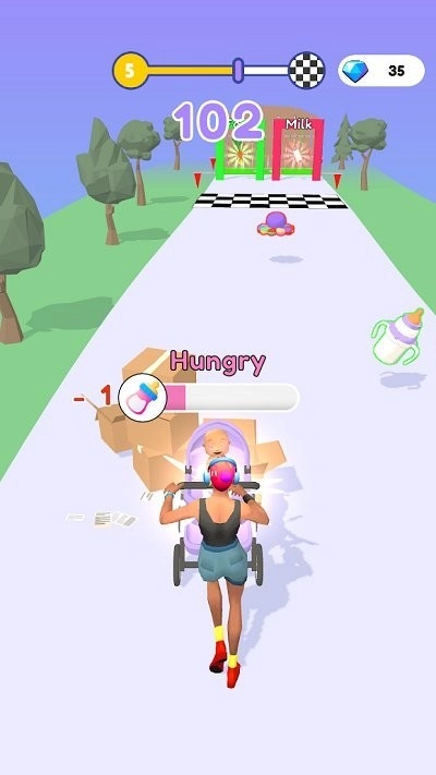 婴儿车向前冲 这款游戏的玩法十分魔性又有趣,在游戏里你会变身为宝宝的妈妈,需要推着婴儿车到街上散步。要留意地面上的陷阱和各种障碍,巧妙地避开它们,同时尽量收集路面上到处散落的奶瓶,最终成功到达终点就能开启下一关。