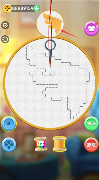 用手指按住针来进行刺绣操作,这对玩家的耐心是不小的考验,一定要小心别让绣线跑到图形的轮廓外面,这样才能顺利完成这一挑战。