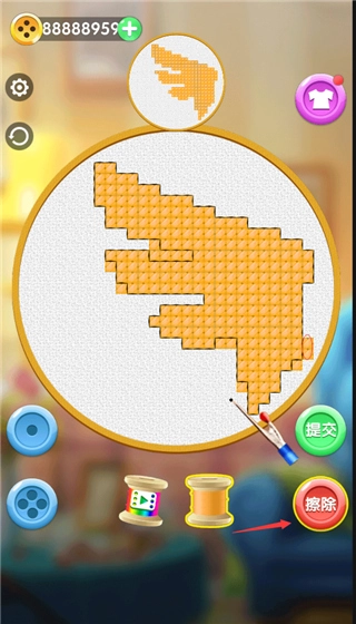 直到所有刺绣都完成后,点击“擦除”按钮就能把多余的刺绣部分清理掉。