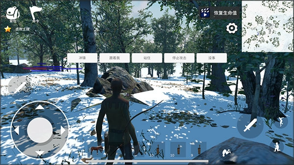 2、接着通过滑动轮盘进行移动,右侧按键进行瞄准射击,跳,蹲和翻滚;