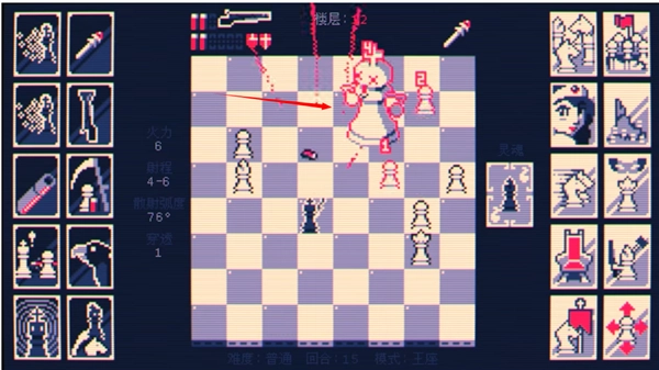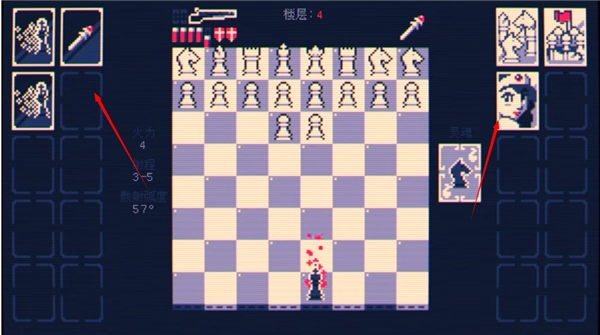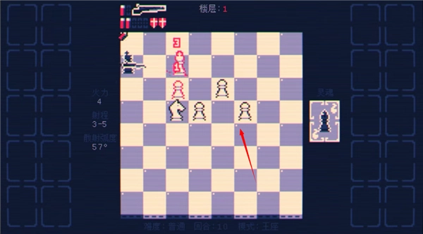 2、游戏以楼层为单位,每层都有不同的白棋职位数量和难度,玩家的目标是将每一楼层的国王击杀,以进入下一楼层。