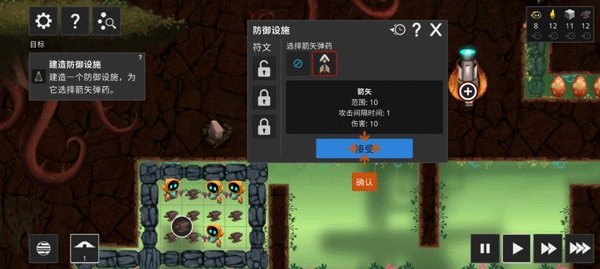 10、防御措施需要武器,所以我们需要生产箭矢,而箭矢的材料需要木材和铁材,所以前期的生产材料很重要