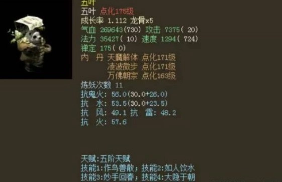 第四个是五叶,下面为大家呈现它的基础信息与属性,涵盖技能、天赋、觉醒等内容。