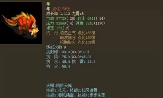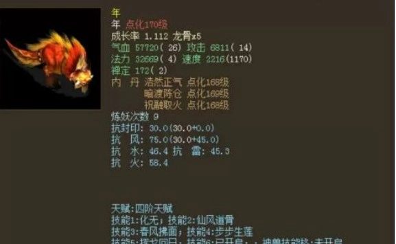第二个要点是,画中仙的下方展示着它的基础信息与属性,涵盖技能、天赋、觉醒等内容。