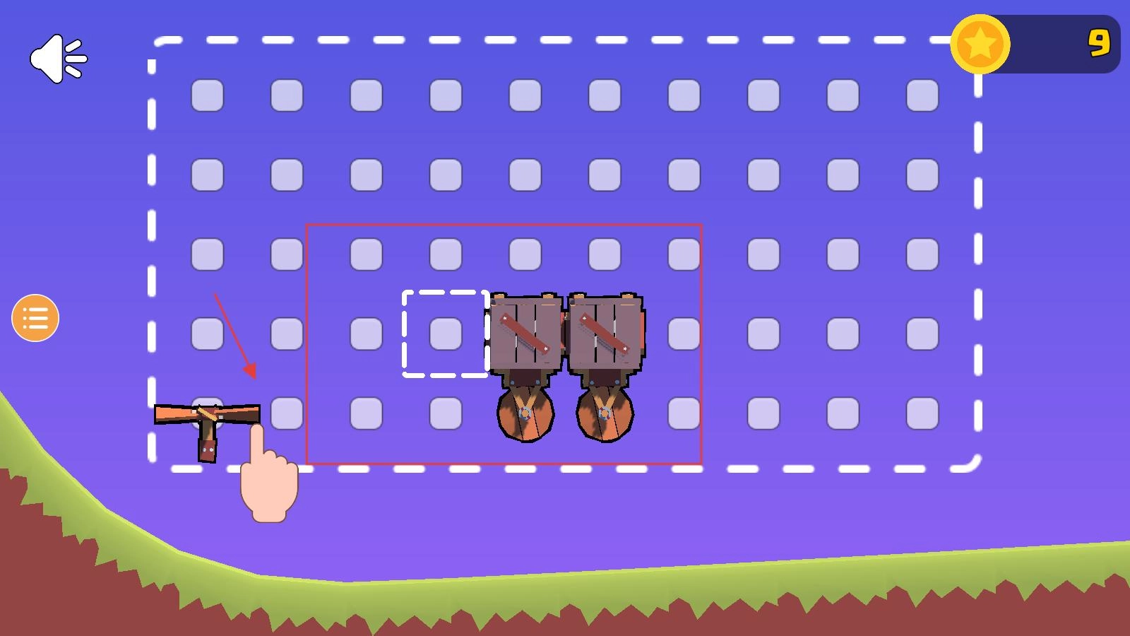 玩家进入游戏后,开局需在网格界面通过拖动方块与战车完成合并,以此提升战车属性,随后点击三角形图标即可进入关卡。