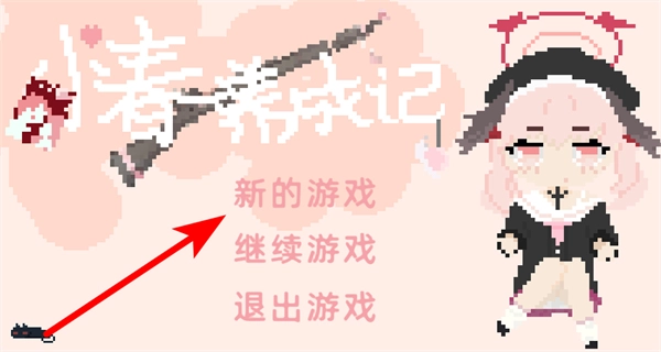 1、在游戏启动界面,点击“新的游戏”选项,这是开启小春养成流程的关键步骤,点击后即可进入养成主场景。