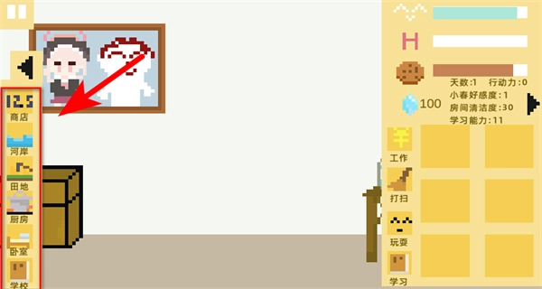 《小春养成记》菜单最新版是一款复古像素风的自由养成游戏,菜单设计旨在为养成过程提供便利。游戏核心玩法聚焦于五十天内的角色培养,玩家每天拥有两点行动力,需要合理分配到工作赚钱、打扫卫生、陪伴互动和辅导学习等事务上,还要应对三次重要考试。此外,玩家可以探索商业街、服装店等多个场景,通过购买道具、钓鱼种地等途径优化养成策略,解锁更多丰富的互动内容。