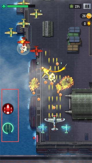 1、借助简易的触屏操作就能控制战机的移动与射击,集中火力摧毁所有来袭的敌机以及地面的战略目标。