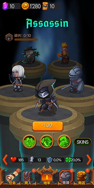 在地下城英雄时代里,每个英雄都具备独特的专长与特色:属性分布均衡的骑士Knight,发展路径更为平稳,对新手玩家格外友好;基础攻击力顶尖的烈焰术士Pyromancer,能凭借强力技能瞬间制造爆发伤害;基础生命值与防御力双高的灵魂收割者SoulReaper,可在战斗中坚守至最后一刻;精通范围攻击的弓箭手Archer,能对成群敌人施加持续输出;基础幸运值最高的刺客Assassin,则能借助中毒的异常状态,对敌方单体造成致命打击。不存在全能型英雄,只有风格各异的战斗方式。只要操作精准,无论选择哪个英雄,都能展现出亮眼的表现。