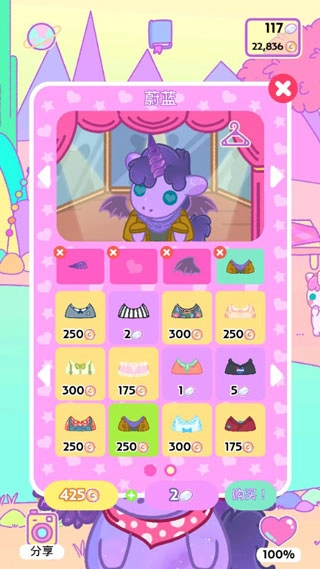 在精品店里挑选头饰、表情、翅膀和服装这类装饰,能让独角兽的独特风格得以展现。
