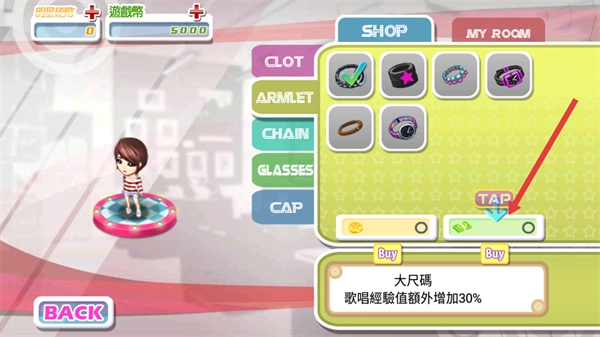4、选择想要的装扮,点击对应的购买按钮,消耗资源来获得该装扮,从而提升属性。