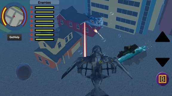 您是水中的超级机器人鲨鱼,肩负着从邪恶危险的鲨鱼手中拯救海洋的使命。这款机器人鲨鱼配备了锁定导弹等未来感十足的武器。 鲨鱼游戏一般是为那些渴望在水下畅游的人们设计的。这款机器人鲨鱼游戏能为您带来绝佳的水上体验。在游戏里,您将化身鲨鱼,从危险的鲨鱼口中拯救幼小的鱼类。您就是这个鲨鱼游戏里的超级英雄,化身为鲨鱼,对抗邪恶的机器人鲨鱼,拯救整个世界。