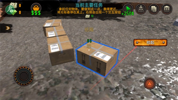 4、把光标移至纸箱处,点击“捡起”按钮来获取这个物品,这样就完成操作了。