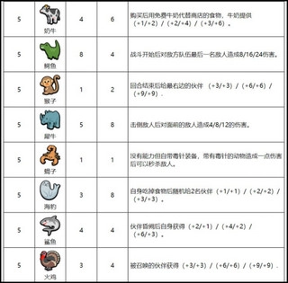 Blowfish/河豚(3/5): 暴怒:造成伤害随机对 1 个敌方随从受到 2/4/6 点伤害Camel/骆驼(2/5): 暴怒:受到伤害给予后方 1 名我方随从 +1/2/3 攻击力、+2/4/6 生命值