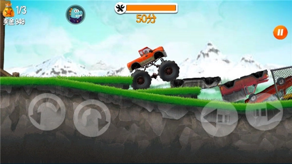 1、享受不同的各种赛车在高坡上赛跑的爽快;