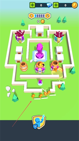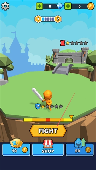 1、点击FIGHT按钮进入战斗场景,操控橙色角色为进攻敌方城堡做好准备。