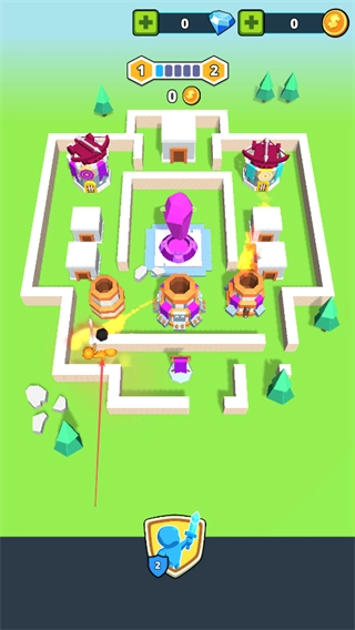 3、操控角色对敌方防御塔发起攻击,以此削减其血量,从而推进战场的整体进度。