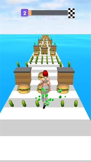 在奔跑的过程中,你要收集路上出现的健康食物,像苹果、西兰花这类,它们可以给角色补充能量,还能提高最终的评分。